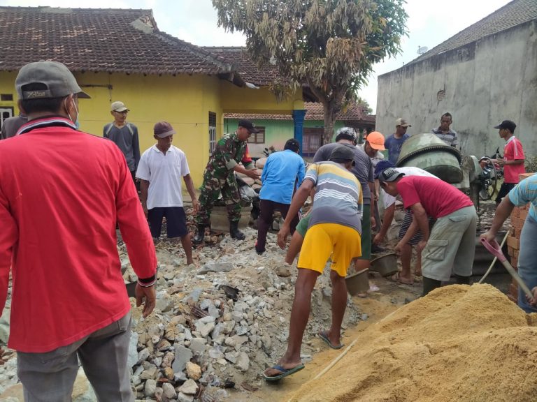 Warga Gotong-Royong Bersama Babinsa Bantu Bangun Rumah Warga Yang Terbakar