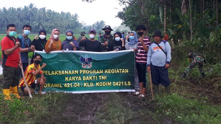 Bersama Mahasiswa UIN dan Masyarakat Palembapang, Koramil Kalianda Gelar Karya Bakti di Dusun Pelita Dewa 2 Juli 2021