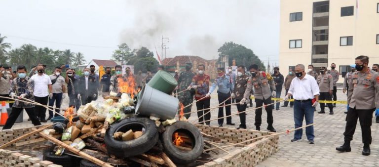 Bersama Forkopimda Lamsel, Kapolda Lampung Musnahkan BB Narkoba Bernilai Ratusan Milyar 20 Agustus 2021