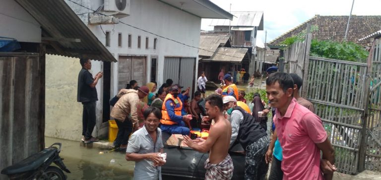 Ratusan Rumah Warga Kecamatan Sragi Terendam Banjir, Polairud Berikan Bantuan Sembako 10 November 2021