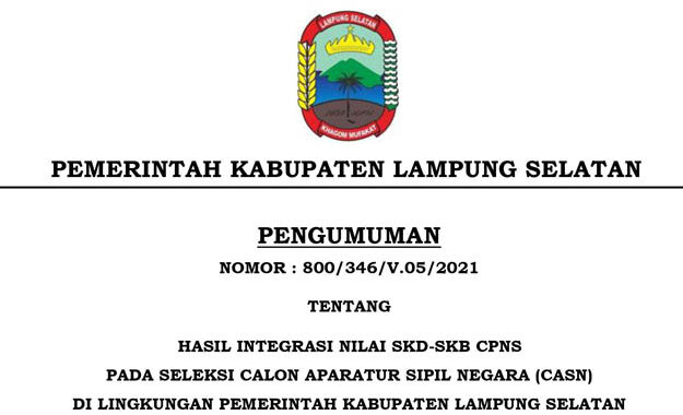 Ini Pengumuman Integrasi Nilai SKD-SKB CPNS Seleksi CASN di Lingkungan Pemkab Lamsel 24 Desember 2021