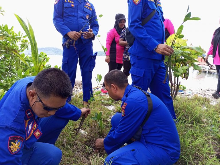 Bersama Bhayangkari, Satpolair Polres Lamsel Tanam Ribuan Mangrove dan Cemara di Pulau Rimau 17 November 2022
