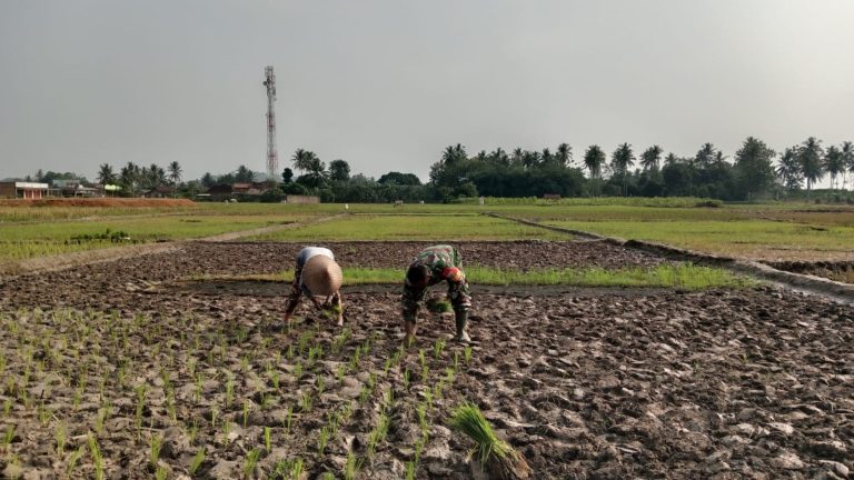 Dukung Ketahanan Pangan, Babinsa Natar Bantu Petani Tanam Padi