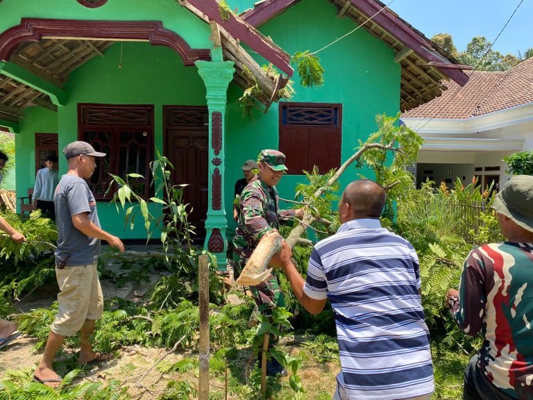Babinsa Kalianda Bantu Rumah Warga Yang Tertimpa Pohon Tumbang di Desa Negeri Pandan 28 September 2023