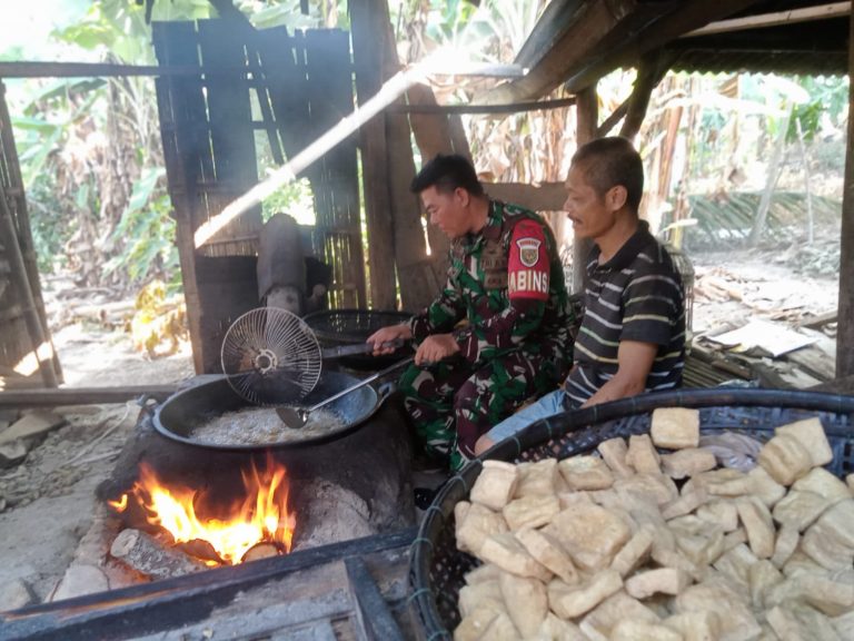 Kunjungi Pelaku UMKM, Babinsa Katibung Bantu Pembuatan Tahu