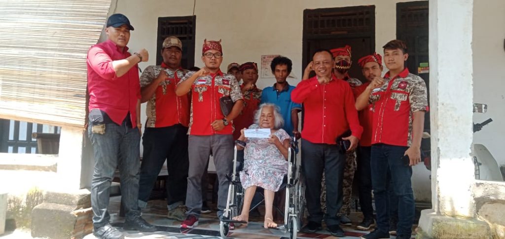 Hanuang.com, Metro — Gerakan Masyarakat Lokal Indonesia (GML) Dewan Pimpinan Wilayah Lampung dan Daerah Metro Melakukan Kegiatan Pemberian Kursi Roda dan santunan di Banjarsari, Metro Utara, Kota Metro, Kamis, (03/02/22).