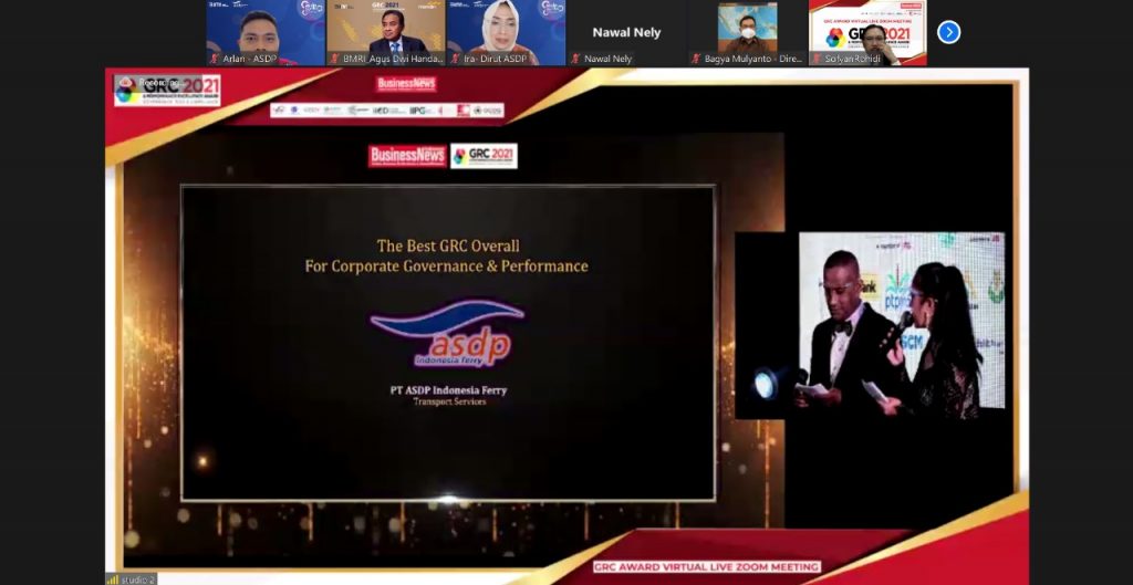 Dalam perhelatan ini, ASDP berhasil meraih 2 penghargaan sekaligus, The Best GRC for Corporate Governance dengan penilaian Lima Bintang dalam kategori perusahaan jasa transportasi, dan juga The Best CEO yang diberikan kepada Direktur Utama ASDP, Ira Puspadewi. ASDP dinilai telah sukses mengimplementasikan Good Corporate Governance (GCG) dalam proses Bisnis maupun operasional sehingga dapat meningkatkan pelayanan terhadap pelanggan maupun mitra bisnisnya.