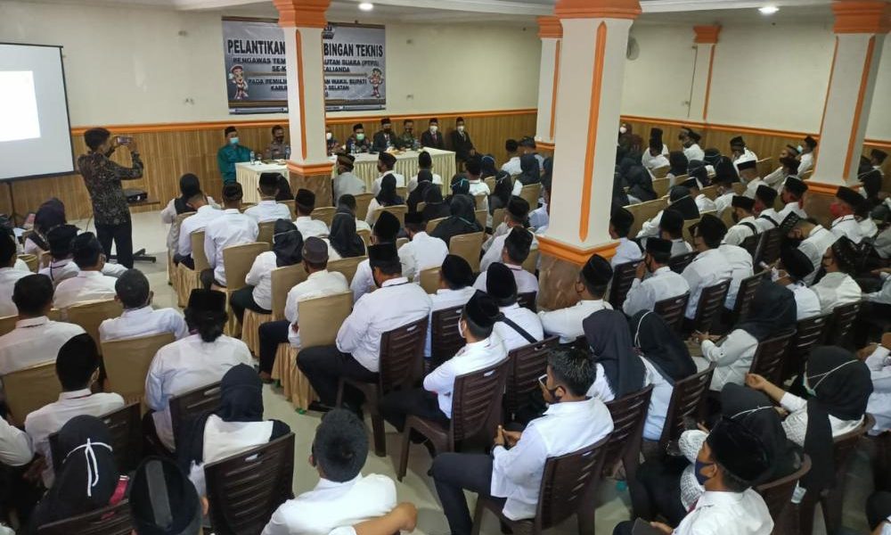 Hanuang.com – Badan Pengawas Pemilihan Umum (Bawaslu) Kabupaten Lampung Selatan (Lamsel) melalui Panitia Pengawas Pemilu (Panwaslu) Kecamatan Kalianda, melantik 177 Pengawas Tempat Pemungutan Suara (PTPS) Se-Kecamatan Kalianda dalam menghadapi Pemilihan Bupati dan Wakil Bupati Kabupaten Lampung Selatan Tahun 2020, Minggu, (15/11/20).