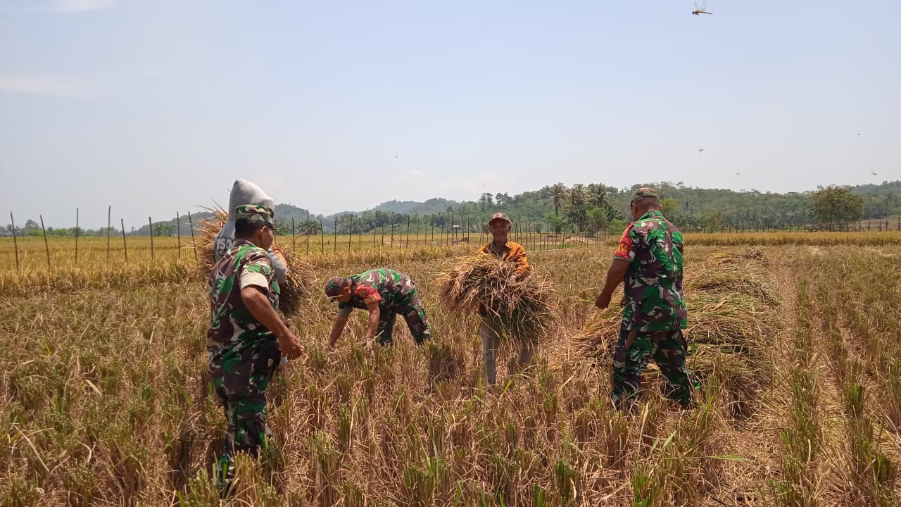 Dalam kegiatan tersebut Babinsa membantu para petani untuk memanen padi di Desa Tebah Jawa, kegiatan itu dilakukan guna menjaga ketahanan pangan di tengah pandemi COVID-19.