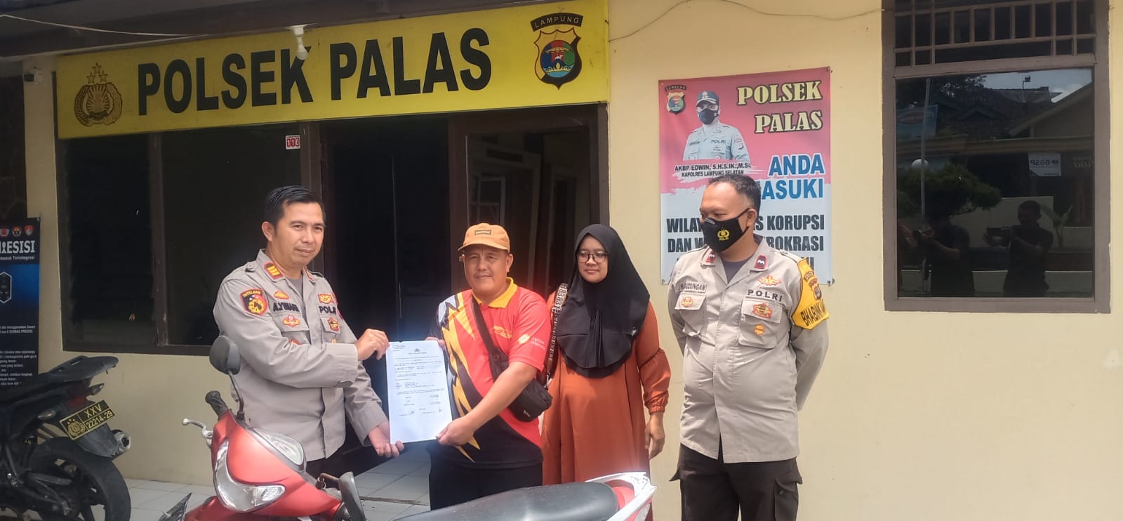 Penyerahan tersebut digelar di Mapolsek setempat kepada pemiliknya yakni Ngatini, warga desa Sukaraja, RT/RW 002/002 Kecamatan Palas, Kabupaten Lampung Selatan (Lamsel).