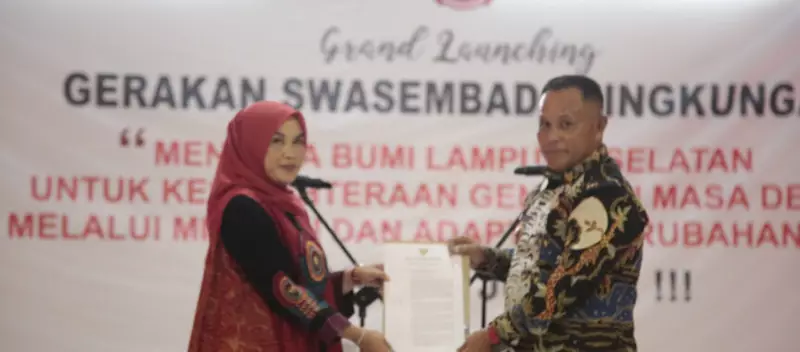 Pengukuhan Duta Swasembada Lingkungan tersebut bersamaan dengan pelaksanaan launching gerakan swasembada lingkungan, yang berlangsung di Aula Rimau Bappeda Lampung Selatan.