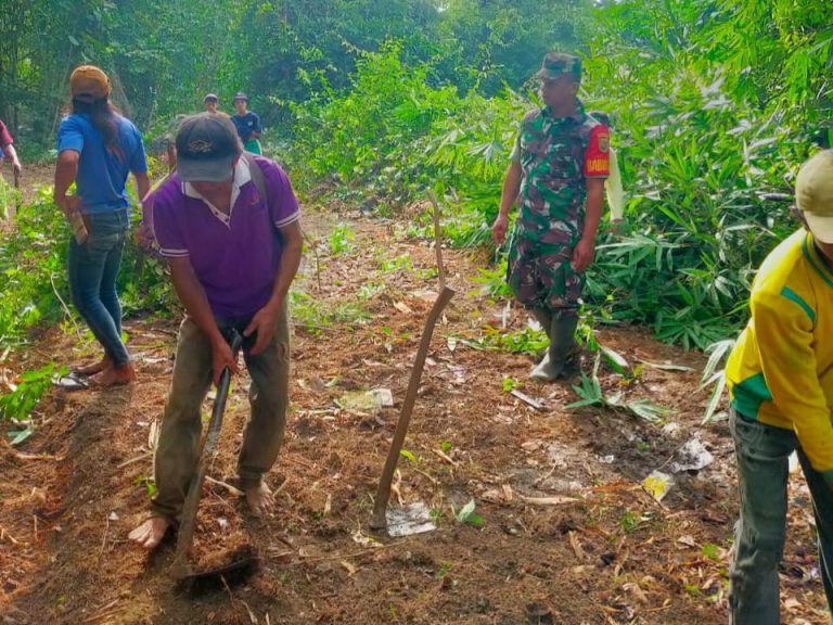 Babinsa Kedondong Bersama Warga Lakukan Karya Bakti Pelebaran Jalan Desa
