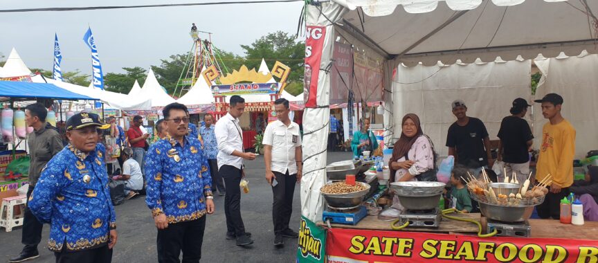 Orang nomor satu di bumi Khagom Mufakat nampak meninjau satu persatu stand dari 17 Kecamatan se-Kabupaten Lampung Selatan.