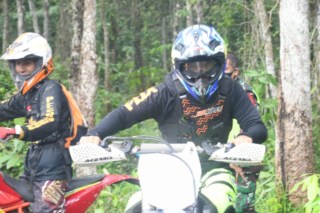 Hanuang.com – Dandim 0421 Lampung Selatan (Lamsel), Letkol INF Enrico, Setyo Nugroho, S. sos, M.tr (Han), bersama komunitas trail Kabupaten Tulang Bawang Barat (Tubaba), mengikuti kegiatan adventure trail yang digelar diwilayah setempat, Sabtu (10/10/20).