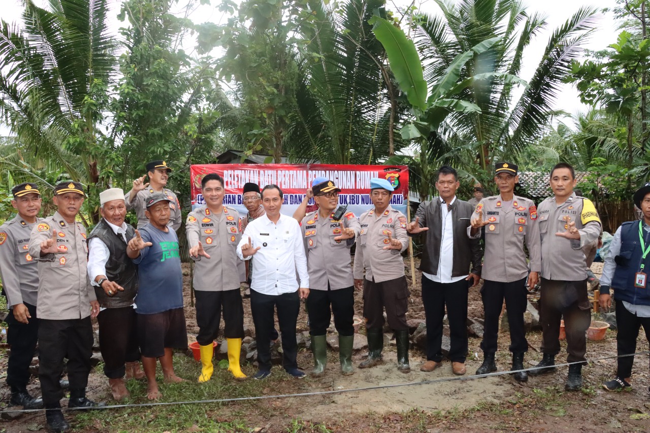 Hanuang.com – Kapolres Lampung Selatan (Lamsel), AKBP Edwin didampingi pejabat utama beserta Kepala Desa (Kades) Kedaton, Junaidi serta tokoh masyarakat melaksanakan peletakan batu pertama pembangunan rumah layak huni untuk Nenek Nurhasanah, Kamis, (17/11/22) pukul 08.00 WIB.