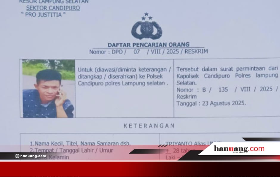 Hanuang.com – Suasana malam di wilayah Desa Sinar Pasmah, Kecamatan Candipuro, mendadak tegang saat aparat kepolisian menghentikan sebuah mobil travel dalam operasi penyekatan, Jumat (3/4/2026) sekitar pukul 21.00 WIB. Dari dalam kendaraan tersebut, seorang pria berinisial T.A.U. (28) yang masuk daftar pencarian orang (DPO) kasus pencurian dengan pemberatan (curanmor) akhirnya tak berkutik saat identitasnya terungkap.
