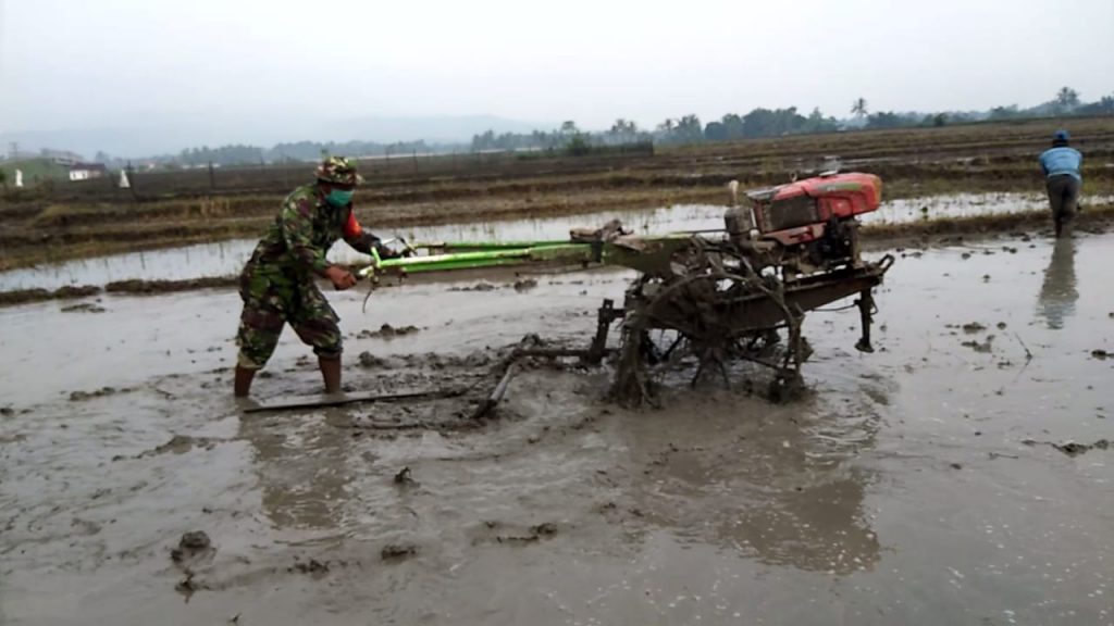 Hanuang.com – Serda Abdul Halim, anggota Koramil 03/Penengahan bantu petani melakukan pembajakan sawah dalam upaya khusus pertanian di areal sawah milik Husein, warga desa Penengahan, Kecamatan, Penengahan, Kabupaten Lampung Selatan (Lamsel), Senin, (15/06/20).