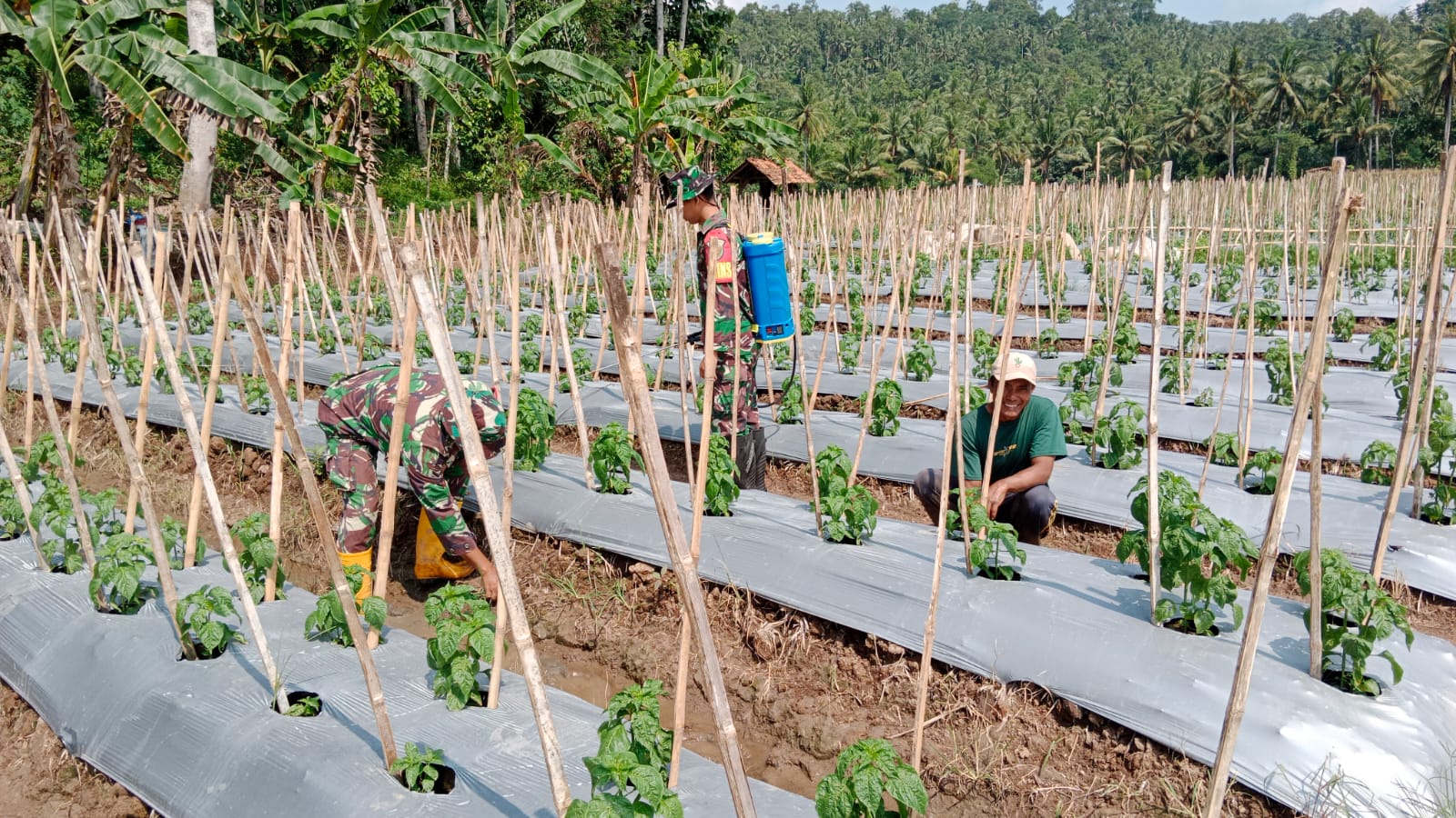 “Selain itu, ini juga untuk mendukung dalam pemanfaatan sumber potensi lokal dalam mewujudkan ketahanan pangan khususnya para petani cabe,” ujar Danramil.
