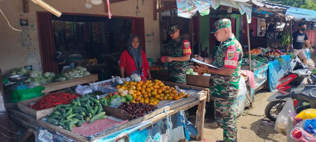 Danramil Gedong Tataan Kapten Inf Sukandi mengatakan, pengecekan harga Sembako di pasar tradisional untuk menjaga kestabilan harga Pasca Lebaran Idul Fitri 1444 H.