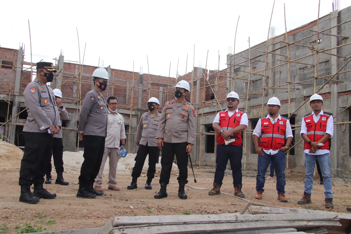 Kesempatan tersebut Kapolda bersama rombongan melakukan pengecekan perkembangan pengerjaan yang tengah berjalan, dan mendapat Keterangan secara langsung dari Penanggung Jawab Pembangunan dari CV Logakata dan Pimpinan Konsultan Pengawas CV Pandu Consultan Enginering. (dn/penmas)