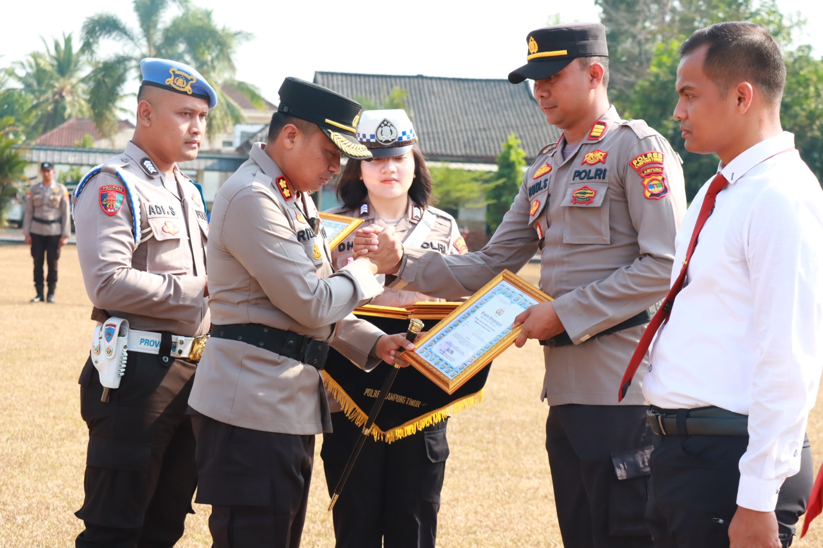 Dalam Upacara tersebut, Polres Lamtim juga memberikan reward kepada Personel yang berprestasi, sebanyak 7 personel menerima penghargaan Kapolres.