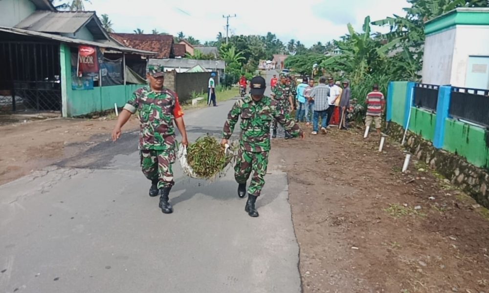 28 orang Babinsa Koramil ikut serta dalam acara gotong-royong tersebut sasarannya adalah pembersihan selokan dan membetulkan pipa aliran air-air dari sumur bor yang patah.