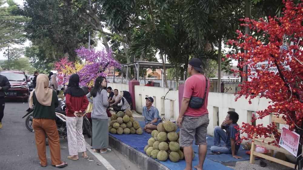 “Suasana jadi enak bang, sambil bercanda ria kita menikmati durian lebih asyik ditambah dengan berbagai pemandangan bunga sakura yang dihiasi lampu-lampu berwarna, seolah kayak sedang wisata durian jadinya” ujar salah seorang pembeli.