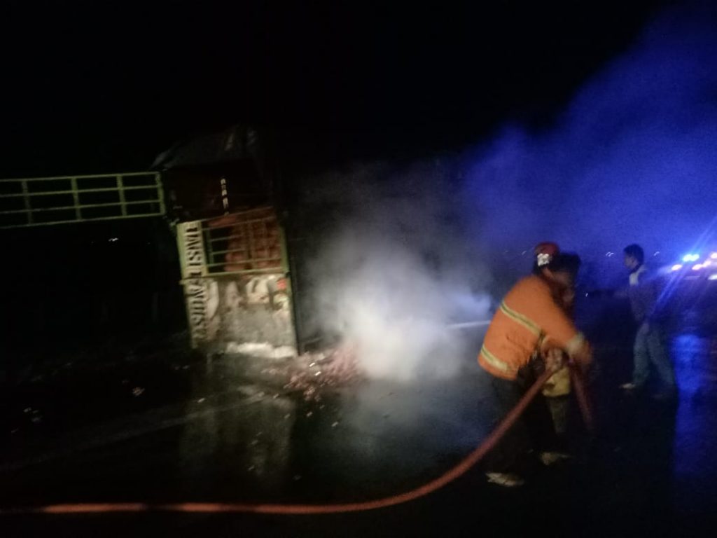 Hanuang.com – Satu unit truck terbakar di Jalan Tol Trans Sumatera (JTTS) KM 37 yang sempat menimbulkan kemacetan bagi para pengguna jalan tol.