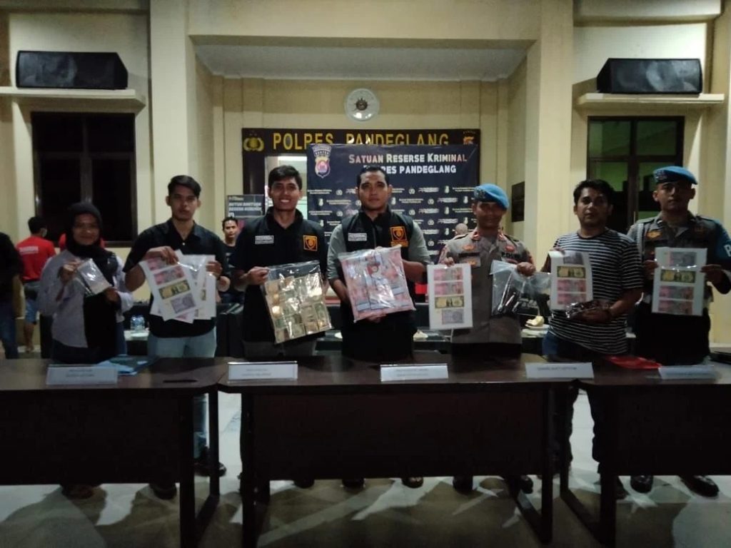 Hanuang.com – Kepolisian berhasil menangkap lima orang yang diduga sebagai pengedar uang palsu senilai Rp 15 triliun di Pandeglang. Polisi pun masih memburu orang yang mencetak uang palsu tersebut.