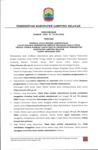 PENGUMUMAN PESERTA LULUS SELEKSI ADMINISTRASI CALON PPPK TENAGA TEKNIS FORMASI TAHUN 2022