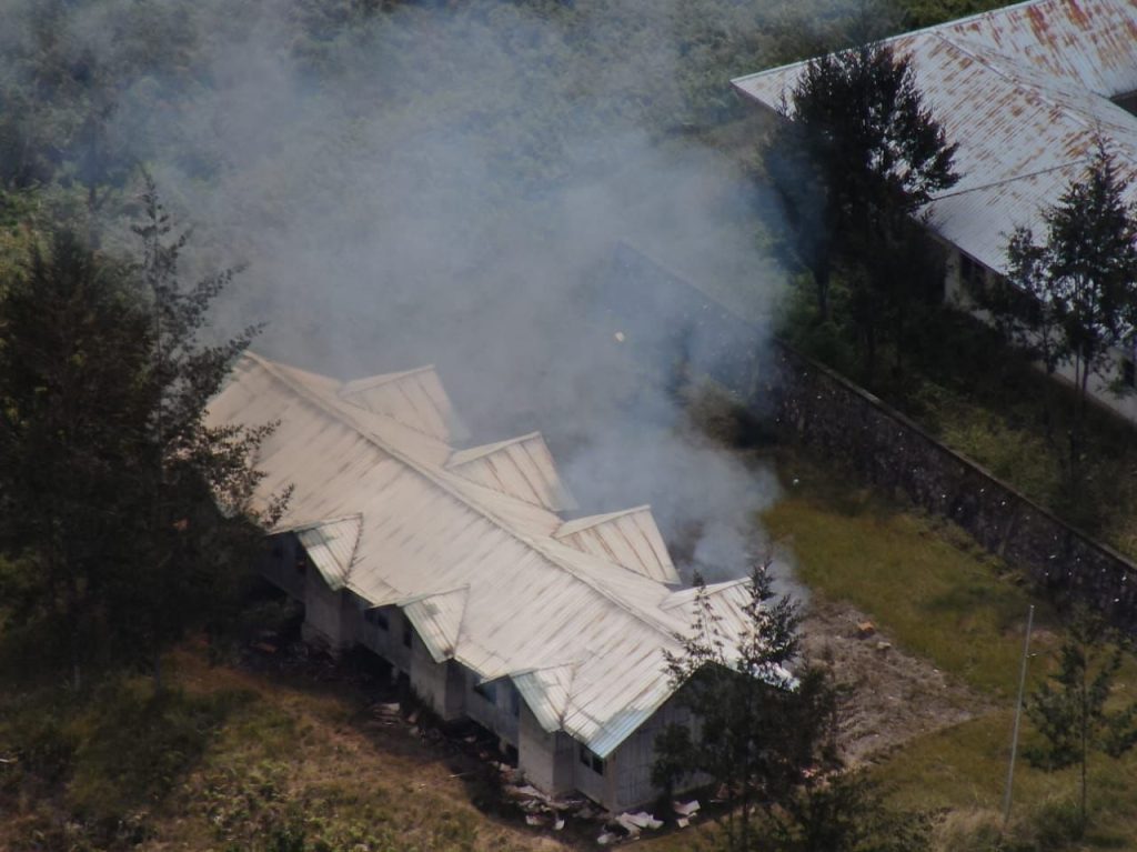 Menurut Kabid Humas, dugaan pembakaran dilakukan oleh KKB saat anggota TNI-Polri ke lokasi dan menemukan dua anggota KKB. Kemudian, dilakukan pengejaran dan keduanya melarikan diri ke Bukit Teletubies dan Kampung Eromaga.