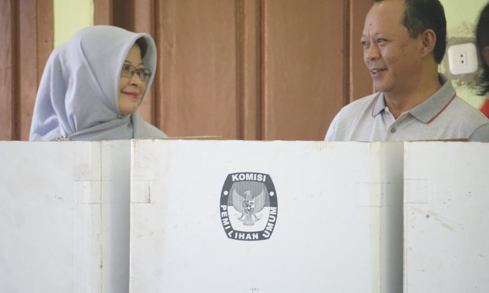 Terlihat hadirKetua DPRD Lamsel, H. Hendry Rosyadi, S.H, M.H, bersama Ketua Ikada DPRD Lamsel, Hj. Sullia, S.pd dan keluarga untuk memberikan hak suaranya.