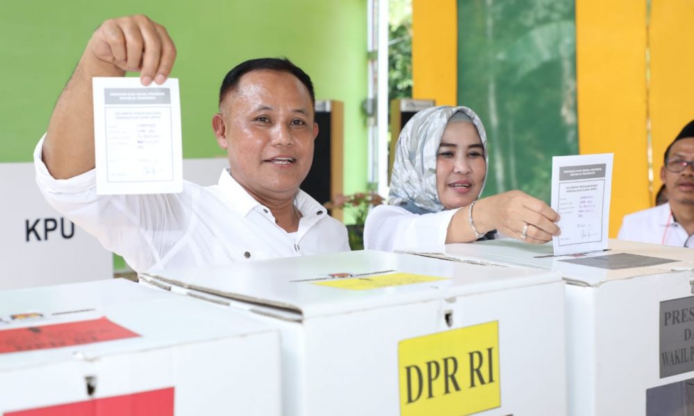 Beranda / Lampung Selatan / Plt Bupati Lamsel dan Istri Nyoblos di TPS 03, Kompak Pakai Putih Hitam