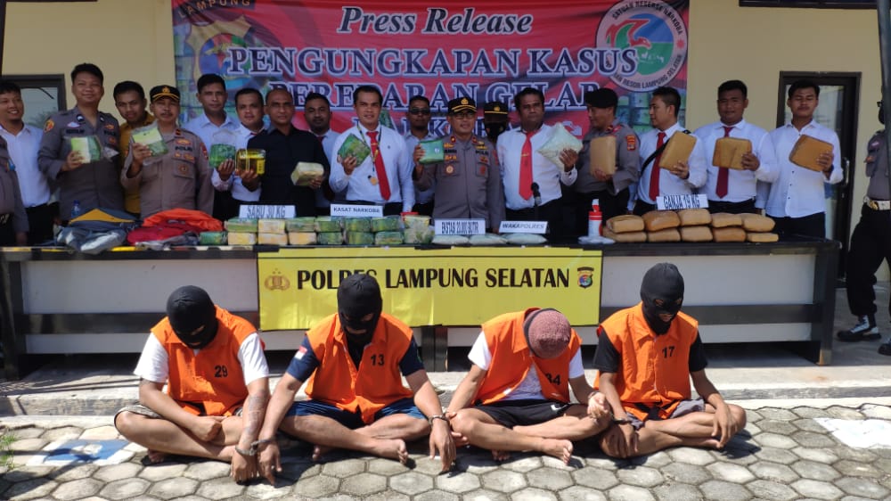 Empat tersangka yang ditangkap Polres Lamsel dalam penyalahgunaan narkoba yakni Muji Supono berperan sebagai pembawa barang dari Lampung menuju Kota Malang dan Eka Prastyo berperan sebagai penerima barang di Kota Malang. Barang bukti yang diamankan yakni Narkotika sebanyak 19 kg Ganja dan 400 gram Shabu.
