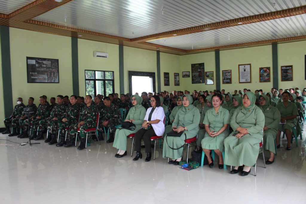 Materi tersebut disampaikan langsung oleh Tim Kesehatan yang meliputi Lettu Ckm.Suhartono , Dokter W.Deatrix (Letda CKM Kowad) serta 1 orang anggota Pelda H. Zulkarnaen di Aula Parikesit Makodim setempat.