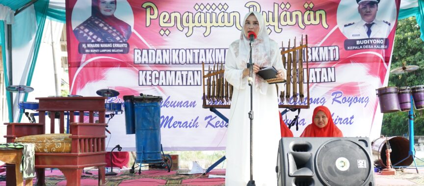 Hanuang.com – Ketua Tim Penggerak PKK Kabupaten Lampung Selatan yang juga selaku Penasehat Badan Kontak Majelis Ta’lim (BKMT) Kabupaten Lampung Selatan Hj. Winarni Nanang Ermanto hadiri kegiatan Pengajian Bulanan BKMT Kecamatan Palas, Jumat (29/07/2022).