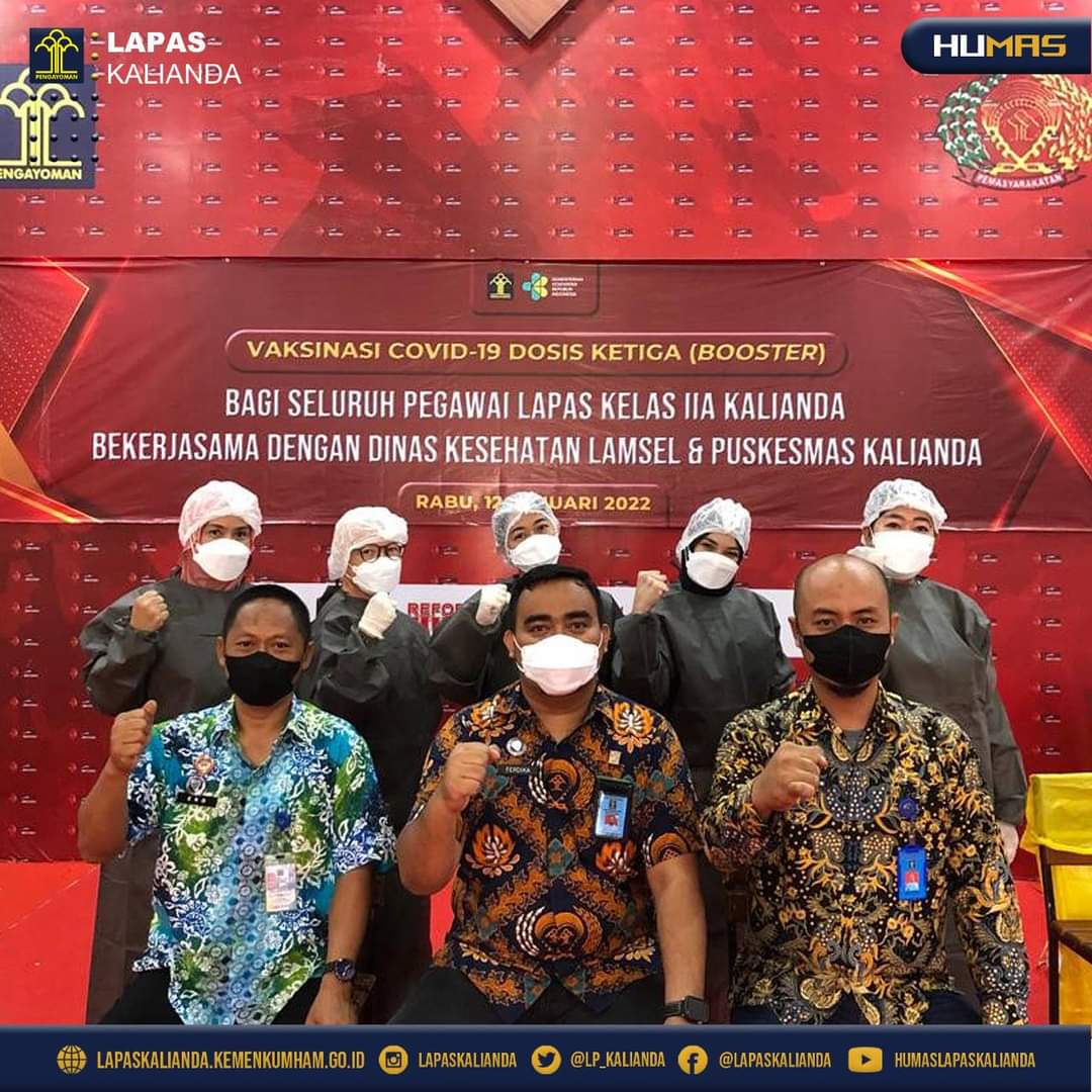 Hanuang.com – Seluruh petugas Lembaga Pemasyarakatan kelas IIA Kalianda melakukan Vaksinasi Booster Covid – 19 oleh Dinas Kesehatan Lampung Selatan bekerjasama dengan Puskesmas Kalianda, Rabu (12/1).