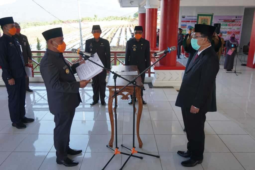 Pelantikan yang dilakukan sesuai protokol pencegahan Covid-19 itu, dilaksanakan di Aula Sebuku, rumah dinas bupati setempat, pada Selasa (19/5/2020) sore.