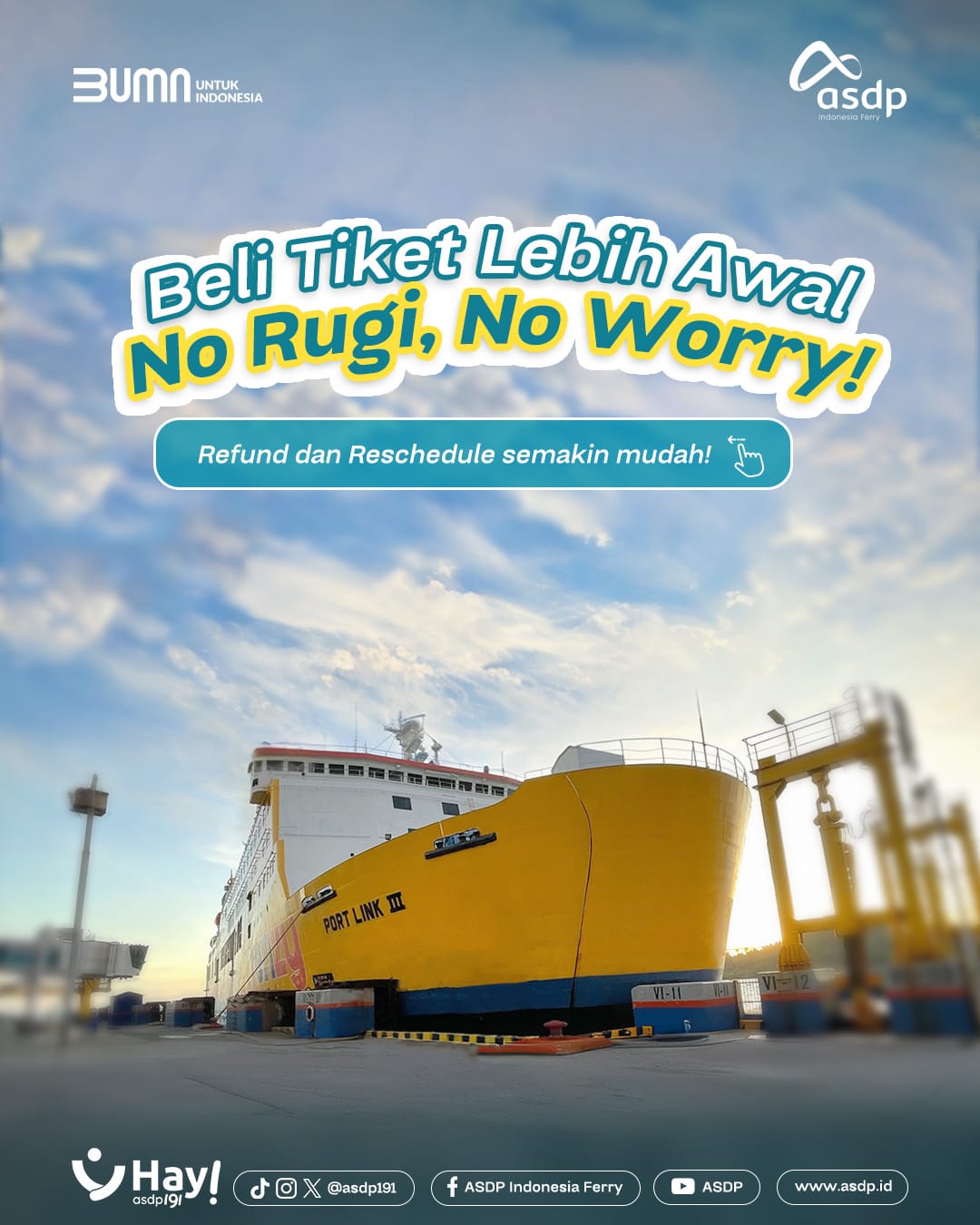 Fleksibilitas ini memberikan pengalaman yang lebih nyaman dan memudahkan masyarakat, terutama saat menghadapi situasi tak terduga. Selain itu, ASDP terus mengedukasi masyarakat untuk memanfaatkan pembelian tiket melalui Ferizy.
